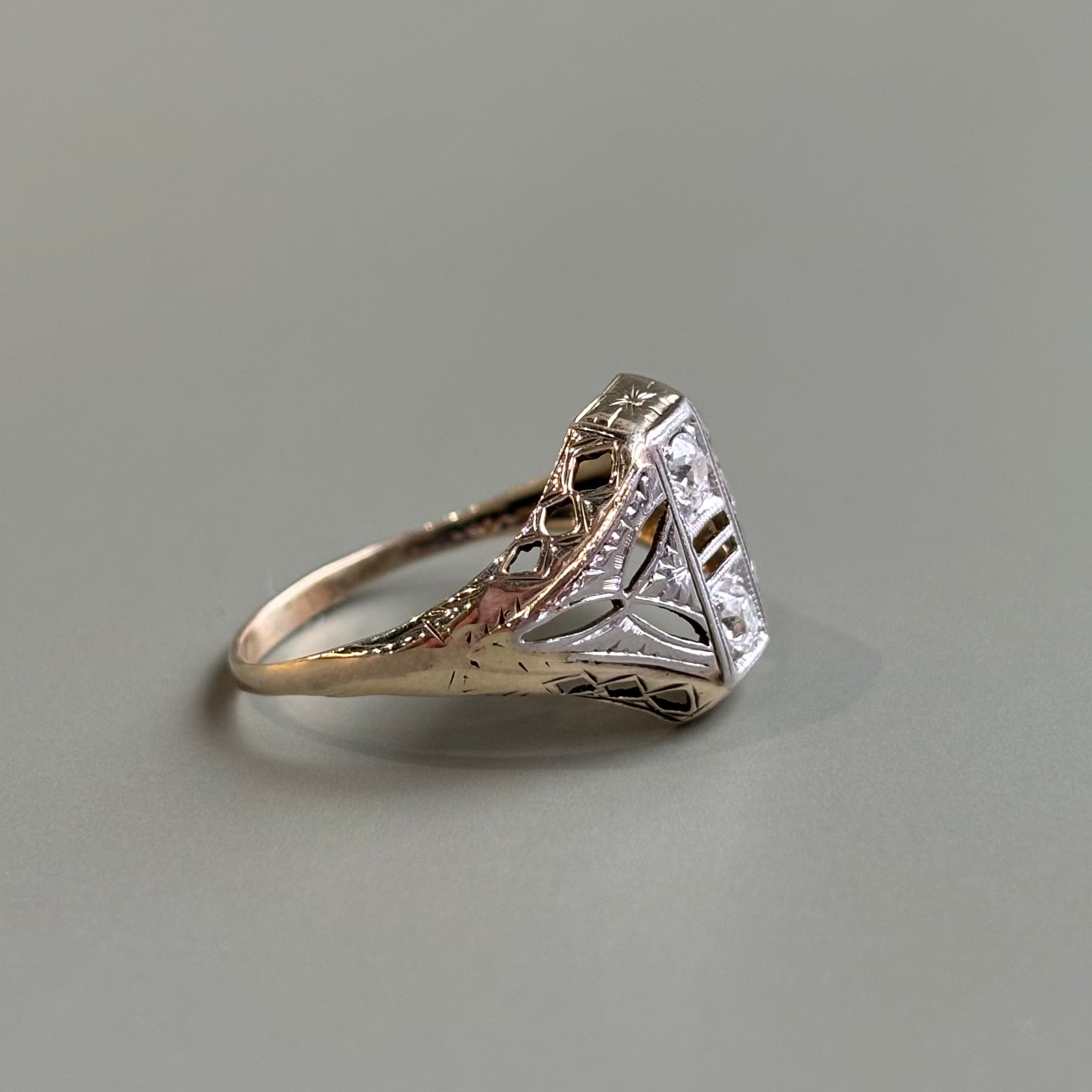 Art Deco Shield Ring | 0.35CTW Old European Cut Diamonds | Vintage