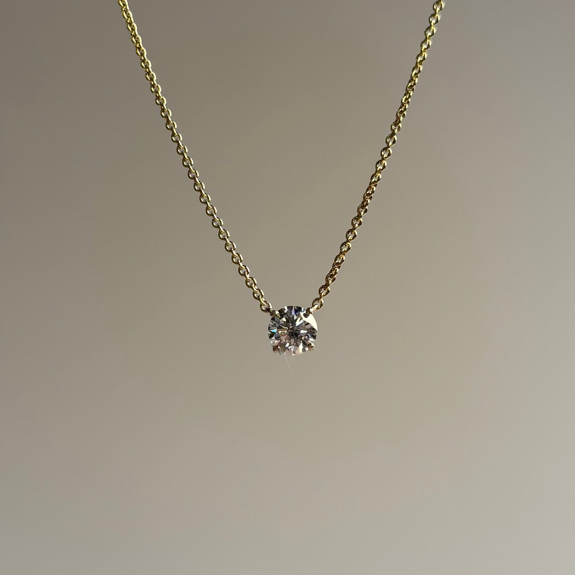 The one you'll reach for every single morning. A 0.50 carat round brilliant lab-grown diamond in a classic solitaire setting, hanging from an 18-inch 14K yellow gold cable chain with a lobster clasp. Simple, bright, and goes with literally everything.