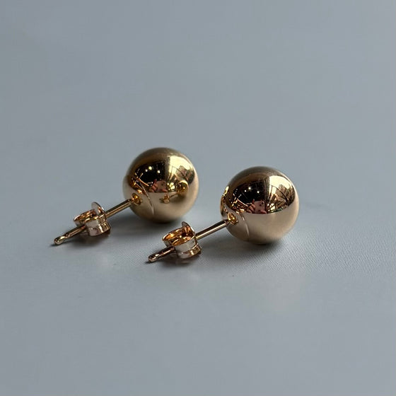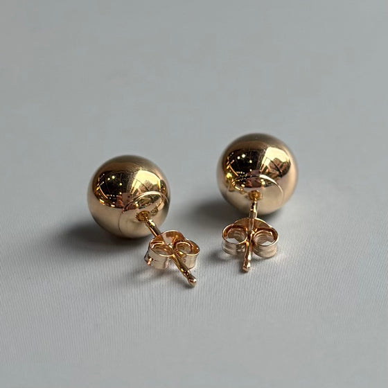 10k Yellow gold large 10x7mm solid gold ball stud earring.