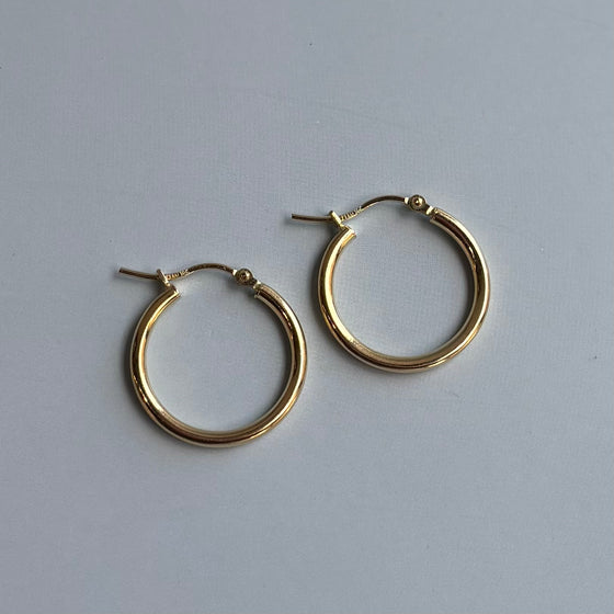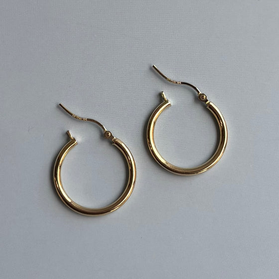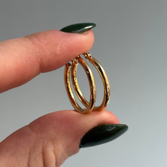 20x20.85mm 10k Yellow gold large wire-clutch tube hoop earrings.