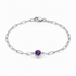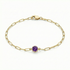This bezel set gemstone bracelet pairs a clean solitaire look with a paperclip chain for a more modern finish. Crafted in 14K gold, it is made to wear often and hold up beautifully over time. Shown here with a single round amethyst, this style can also be made with other gemstone varieties, shapes or multiple stones.