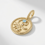 Zodiac gemstones connect to your sign's energy rather than your birth month. The design draws from classical coin medallions and astronomical charts, cast in 14K yellow gold with natural gemstones and diamonds. Pair it with a chain you already own or browse our gold chains to complete the look.