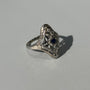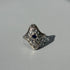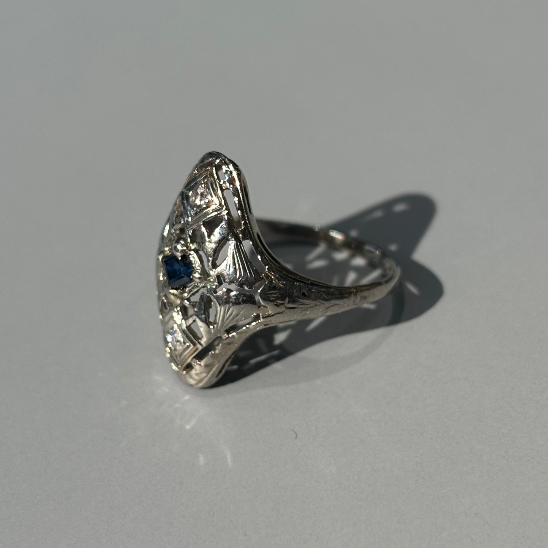 Blue Sapphire & Diamond Navette Filigree Ring | 18k White Gold | Vintage