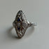 Art Deco Navette Blue Sapphire & Diamond Floral Filigree Ring | 18k White Gold | Vintage